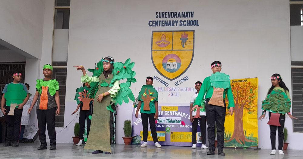 The students of SCS celebrated Van Mahotsav week ( 1st July to 7th July, 2023) with great zeal and fervour under the aegis of Eco Club and Science Club. The theme for this year was `Think green, act green and live green` The students of Junior section undertook a variety of innovative and interesting activities which included badge making, slogan writing, painting the picture of trees through cotton dabbing, hand printing and block printing. Children also performed a stage show which included song, dance & a skit whereas the students of senior classes also participated in plethora of activities. Std VI to VIII students made beautiful head gears using leaves and flowers, they also took selfies with the plants to captivate the moment. Class VIII students presented a skit showing the importance of the trees which was an eye opener for the audience. Students of class IX were addressed by a parent, Dr. Ekhlaque Ahmed, a junior scientist & assistant professor in BAU, Ranchi. He shared valuable information about vegetation and forests. A poem writing contest was also held on this occasion for the students of IX to XII. Mrs. A. Sen, a senior faculty of SCS initiated a plantation drive by planting a sapling of Amla in the school premises. The entire school fraternity wore green colour attire on the concluding day and gifted potted plants to each other. Madam Principal Samita Sinha congratulated the Eco club members for their efforts in sensitizing the students towards their role in conserving the environment. She said that due to the irrational activities and never ending greed of humans, the real lifeline i.e., the forests are at the brink of over exhaustion and it's the high time , `Now or Never.` People ought to recognize their responsibility towards the mother Earth.