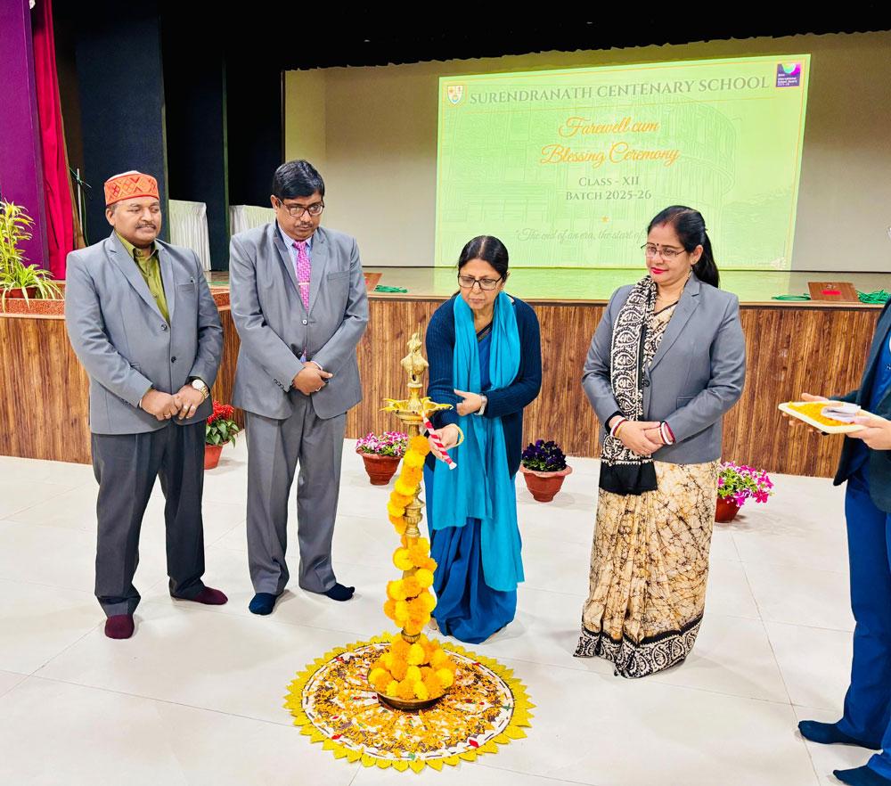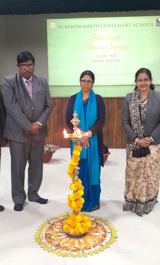 Surendranath Centenary School organized a Blessing Ceremony for its Class X and XII students at the Vidyasagar Auditorium, marking an important milestone in their academic journey. The Class X Blessing Ceremony was held on February 6th. The Honourable Principal, Madam Samita Sinha, addressed the students and extended her best wishes for success in the forthcoming board examinations. In her address, she emphasized the values of hard work, perseverance, and resilience, and encouraged students to uphold the ethos and identity of Surendranath Centenary School. The Class XII Farewell-cum-Blessing Ceremony was held on February 7th which commenced with the lighting of the ceremonial lamp, symbolizing hope, wisdom, and new beginnings. The Honourable Principals inspiring address filled the students with confidence and a sense of purpose. Vibrant group song and dance performances, engaging games, and an address by the Vice Principal added to the significance of the occasion. The ceremony concluded with the distribution of mementos to the outgoing batch. The school extended its heartfelt blessings to all students for a confident, stress-free examination period and wished them success and a bright future ahead.
