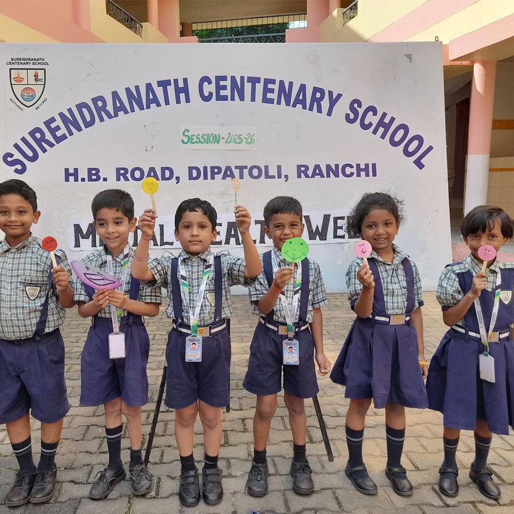 The Health and Sports Club of Surendranath Centenary School observed Mental Health Week from October 4th to 10th, focusing on promoting mental well-being among students. The week began with a school-wide pledge in the morning assembly, emphasizing the importance of mental health and encouraging students to prioritize their emotional well-being. In the junior wing, activities included meditation and yoga sessions for students of classes I, IV, and V, and a painting competition for class III students to express emotions through emojis. Circle Time for Balvatika students facilitated sharing feelings with peers, while classes IV and V contributed to a Gratitude Wall. A health talk, Happy Mind, Healthy Me, was conducted by the school counsellor for class II students. In the senior wing, a motivational speech was delivered in the assembly emphasizing the importance of developing mental well-being. A workshop and interactive session was organized for class 8 students which addressed parental pressure, communication gaps, and fear of judgment. As part of the observance, SCS provided a platform for specially abled children from Deepsikha, an institute for child development and mental health, to showcase their talents and connect with the community through stalls featuring Diwali-themed handmade items. Madam Principal Samita Sinha appreciated the efforts made during Mental Health Week, saying it had fostered a sense of community feeling and empathy among students, promoting mental well-being.