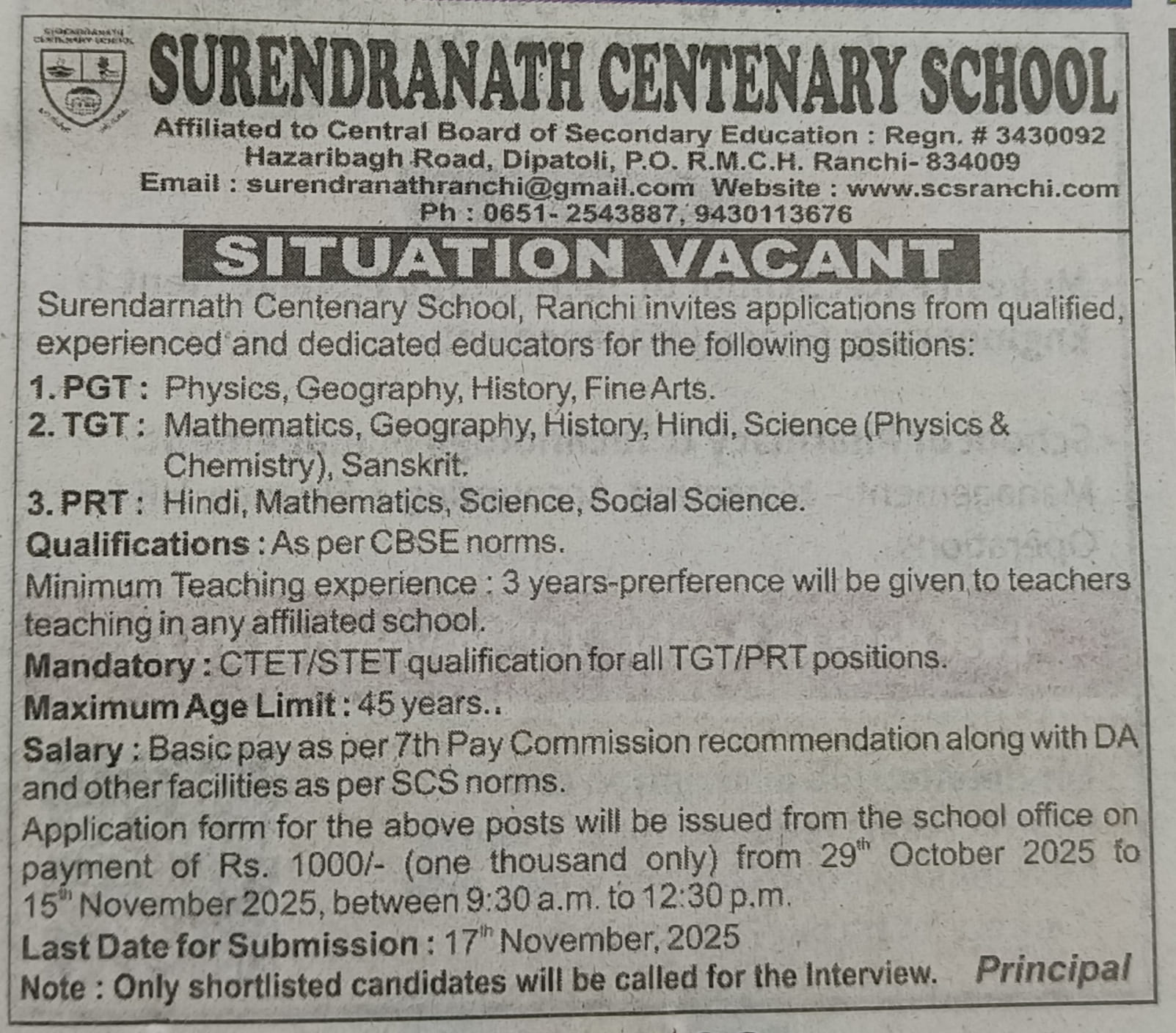 | P.T. Uniform of VI to X will be intimated in due course. |